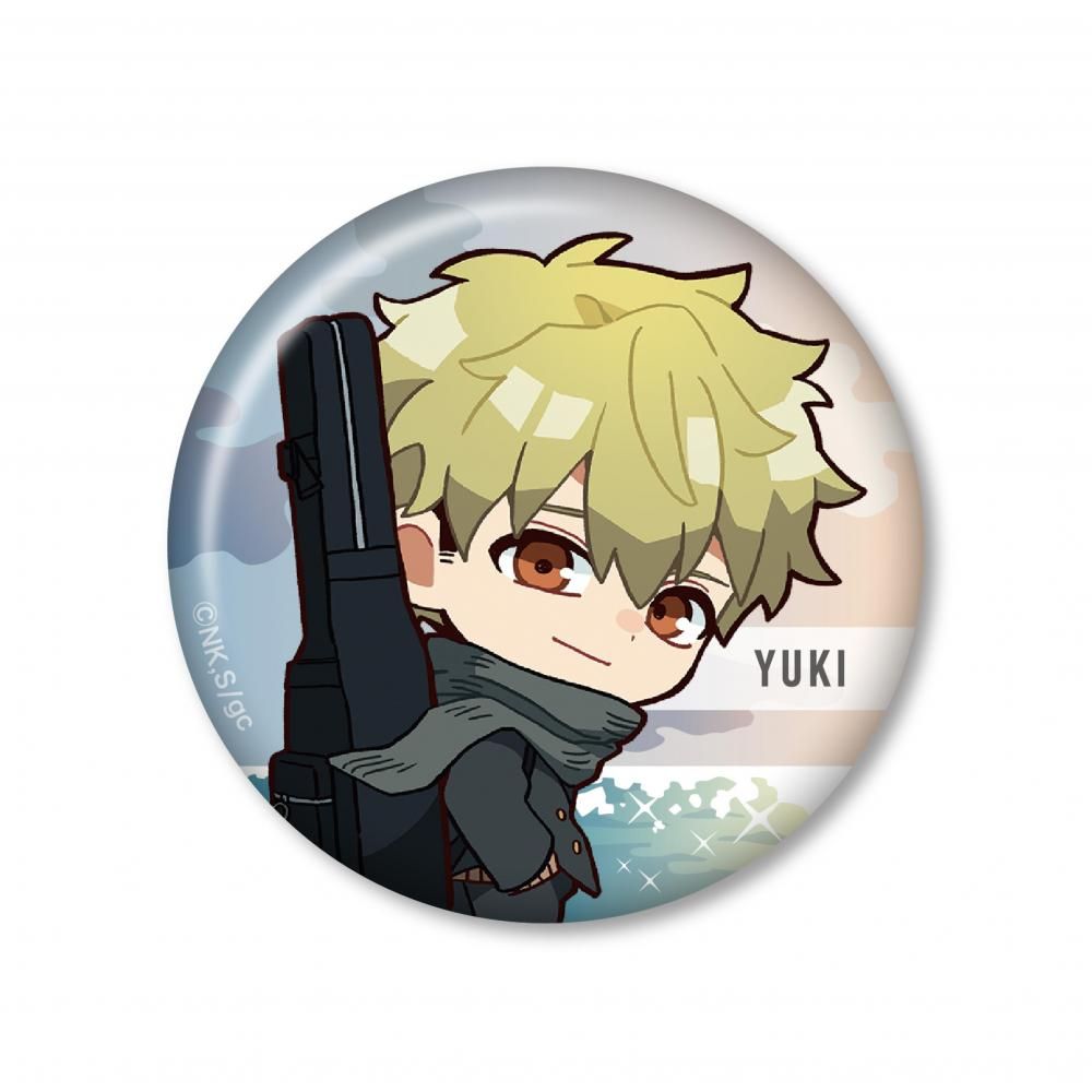 「吉田由紀」の描き起こしデフォルメイラストを使用した缶バッジ。